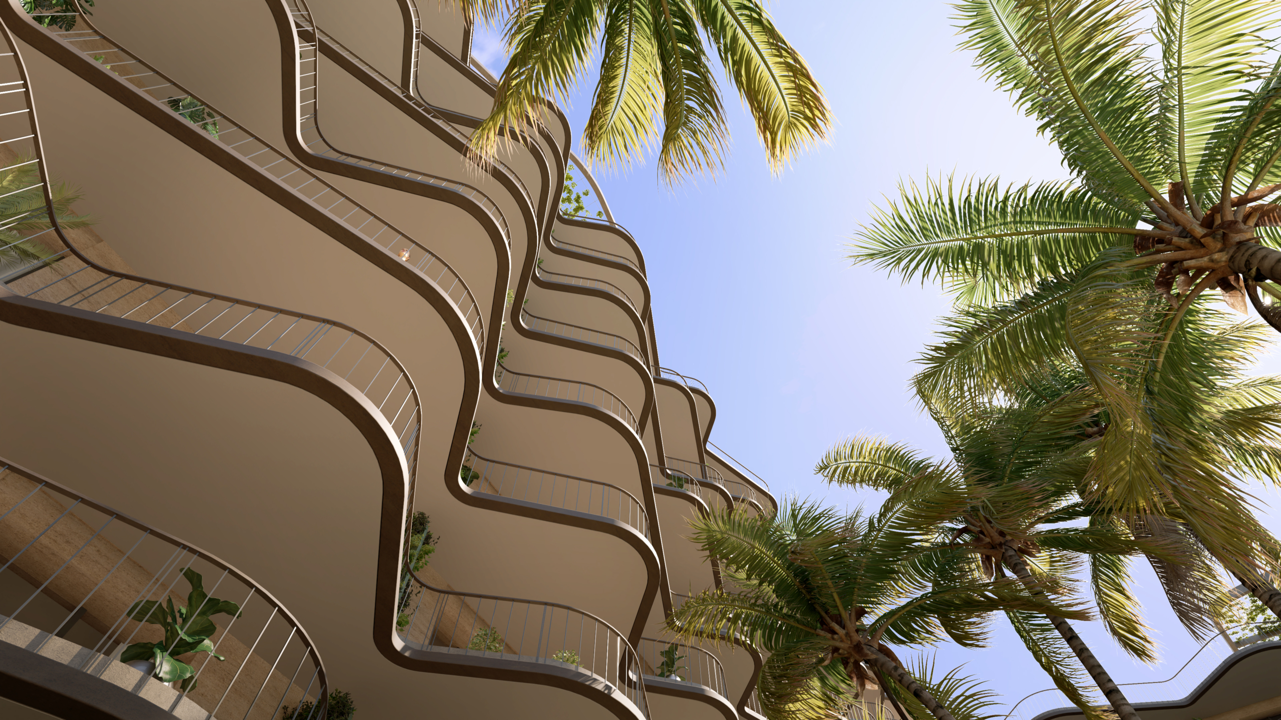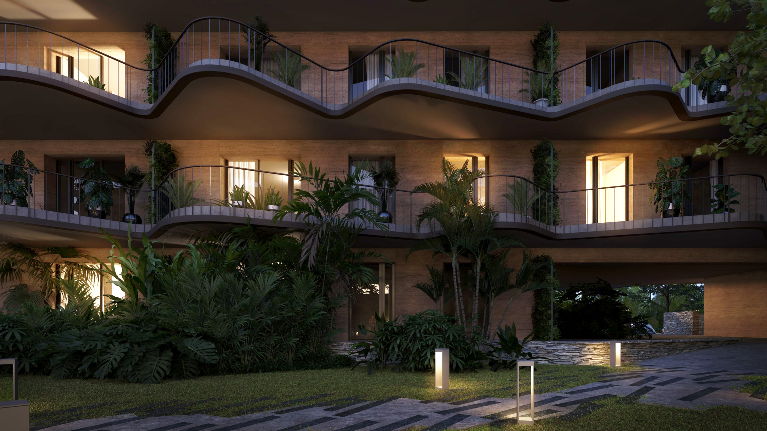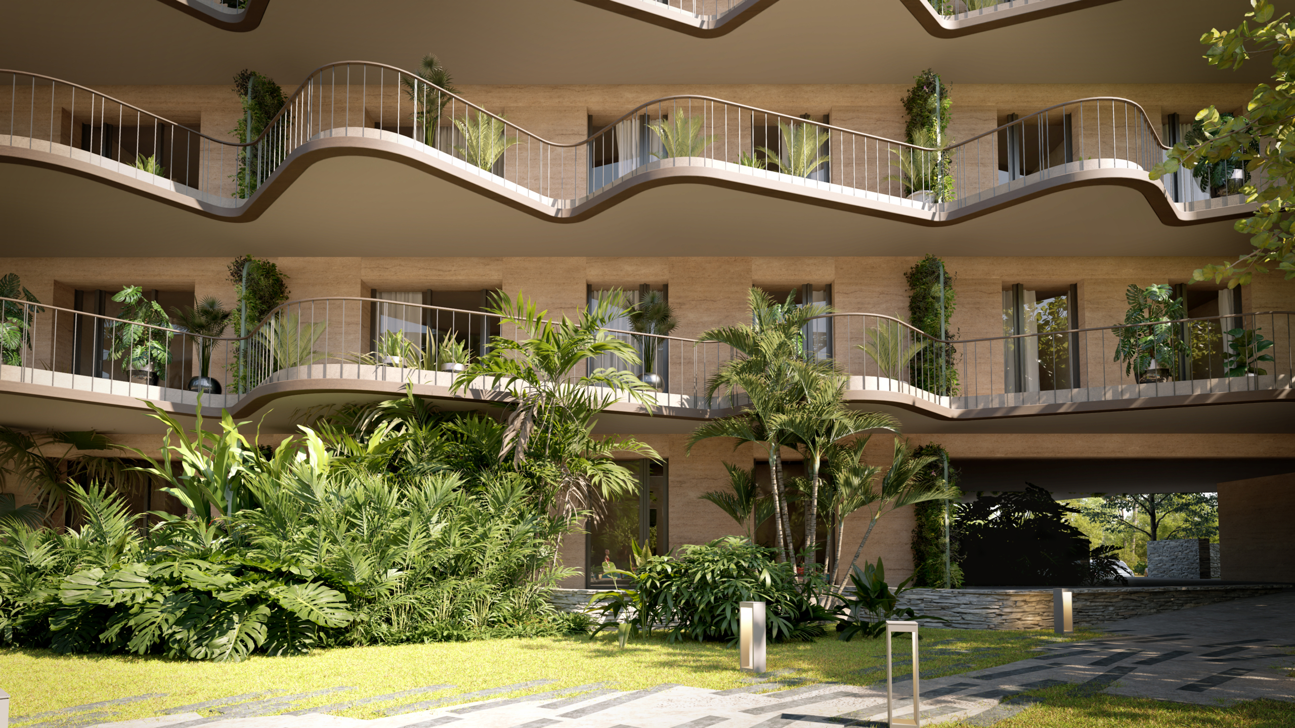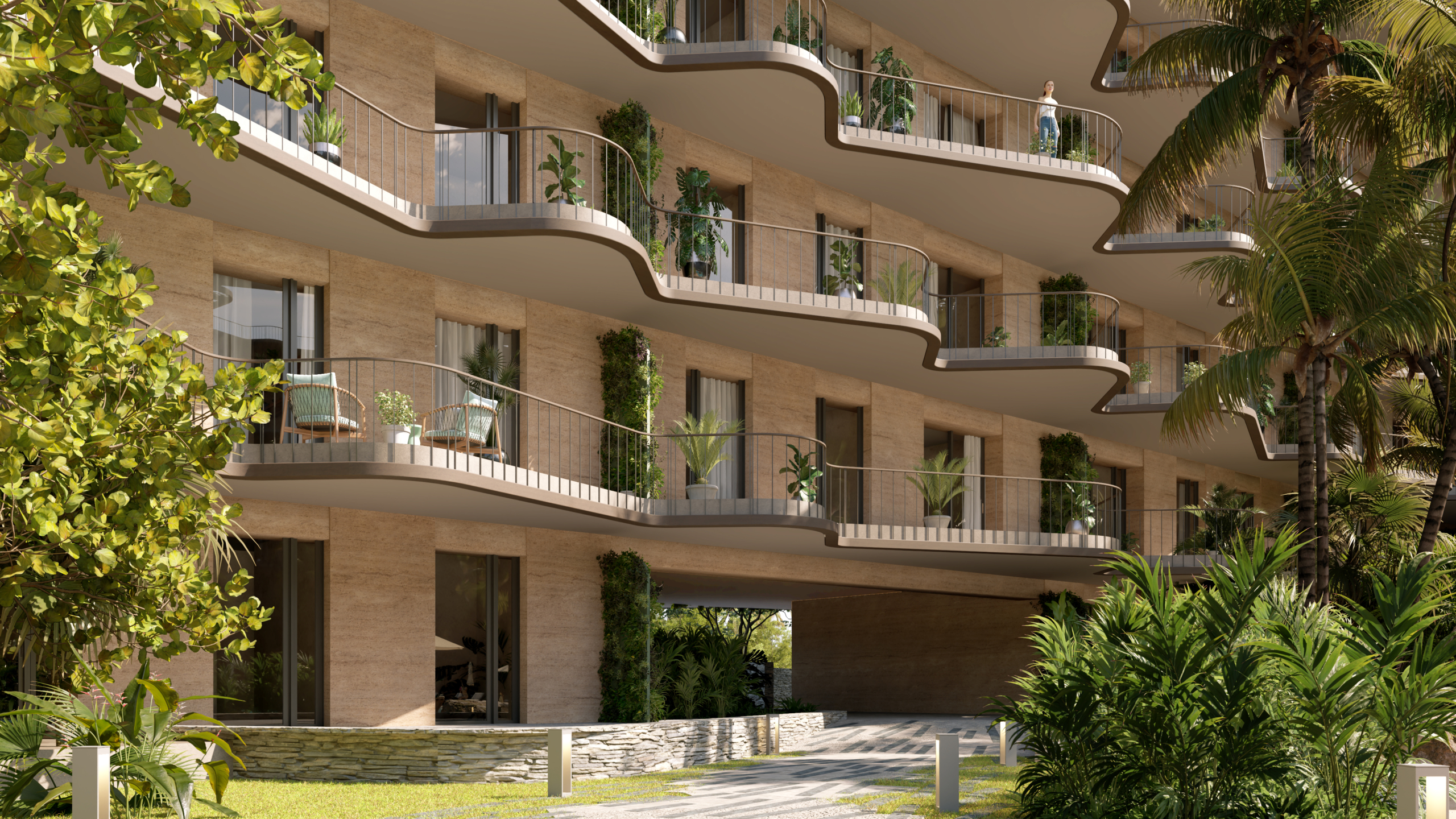 El proyecto ofrece cuatro tipos de apartamentos, todos con terrazas espaciosas y diseños que conectan con la naturaleza: